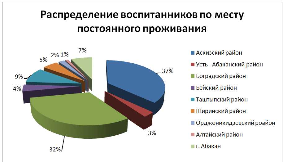 Рис. 1 Распределение воспитан6ников по месту постоянного проживания.