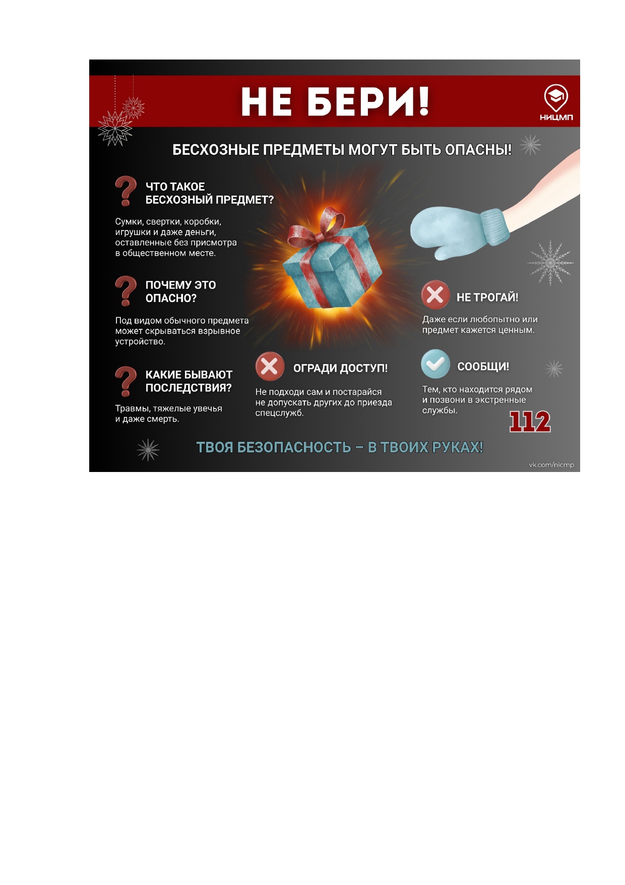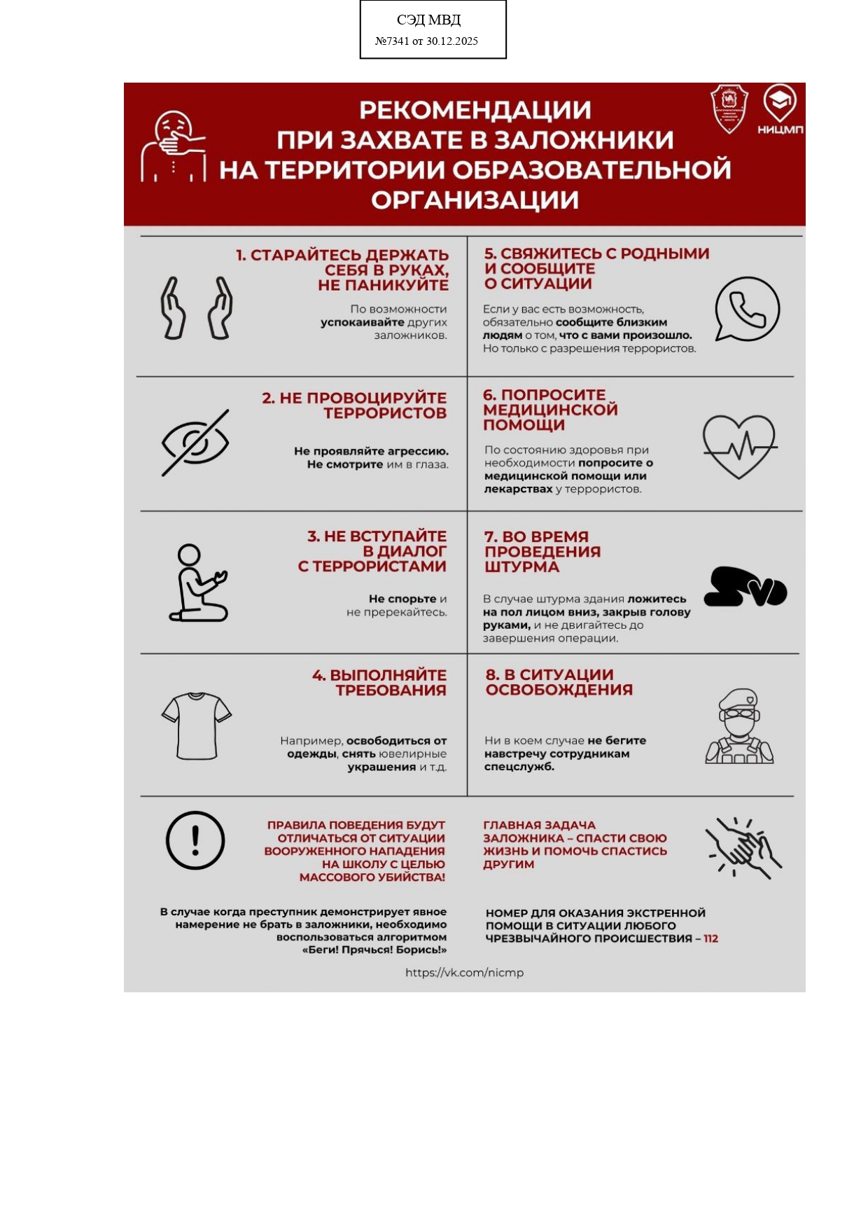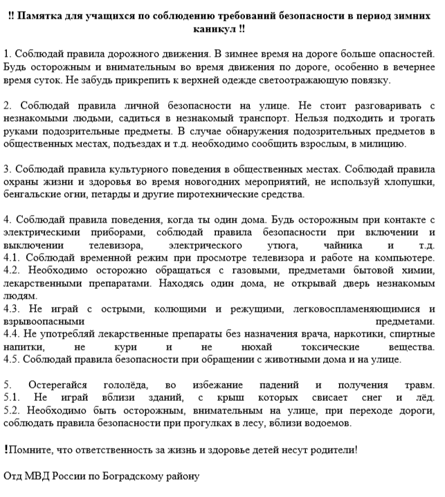 - Министерство образования и науки Республики Хакасия (далее – Министерство) информирует, что согласно статистическим данным в период летних каникул дети чаще всего подвержены различным видам опасностей связанных с пожарами, купанием либо нахождением вблизи водоемов, пищевыми отравлениями и иным. В рамках профилактической работы Министерство рекомендует: активизировать профилактическую работу с детьми по соблюдению правил пожарной безопасности, обратив особое внимание на недопустимость игр со спичками и другими зажигательными приборами; правил поведения на водных объектах, в том числе необходимость купания только в специально отведенных местах, о недопустимости купания без присмотра взрослых; правил поведения в лесу, дома, на улице; правил поведения посещения массовых мероприятий, поведения на спортивных мероприятиях, в играх со сверстниками, эксплуатации аттракционов; соблюдение профилактиках мер по исключению риска заражения «клещевой инфекцией» (Памятки_о комплексной безопасности.pdf)